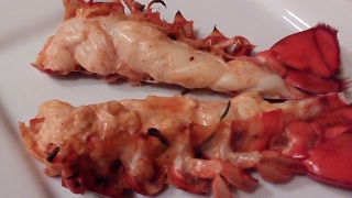 Broil in the preheated oven until lobster meat turns opaque and shell turns red; 4 to 6 minutes.